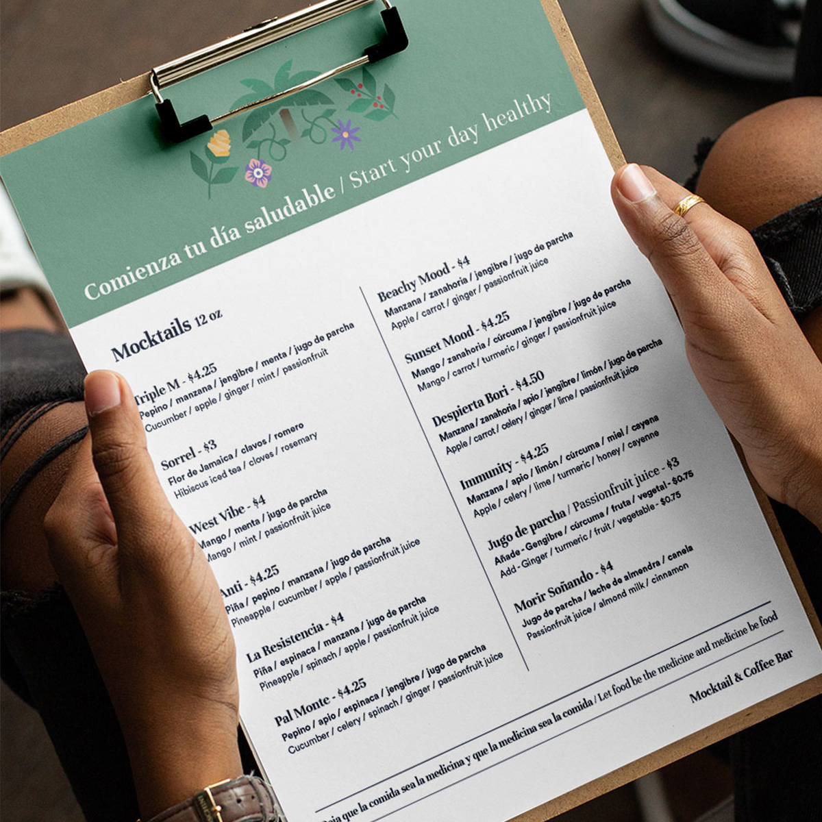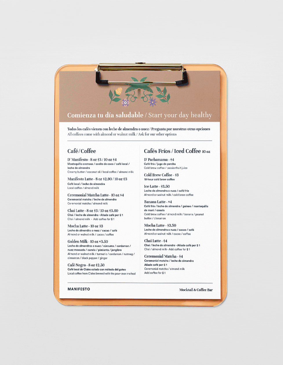 Manifesto is a mocktail & coffee bar based in Puerto Rico. We created the brand, illustrations, menu, icons, and pieces for social networks.
